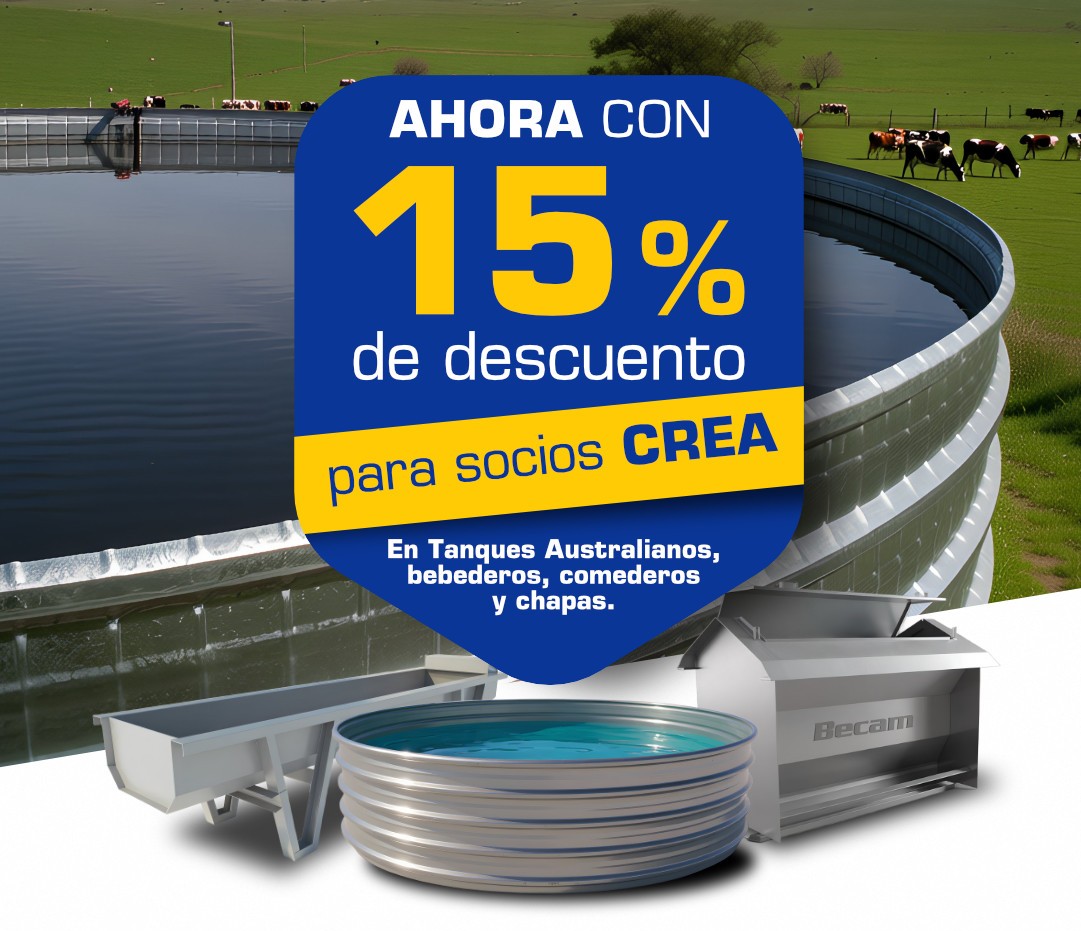 + informaciónEn BECAM, seguimos fortaleciendo nuestro compromiso con el sector agropecuario. Ahora, los socios CREA pueden acceder a un 15% de descuento en chapas, bebederos, comederos y tanques australianos.